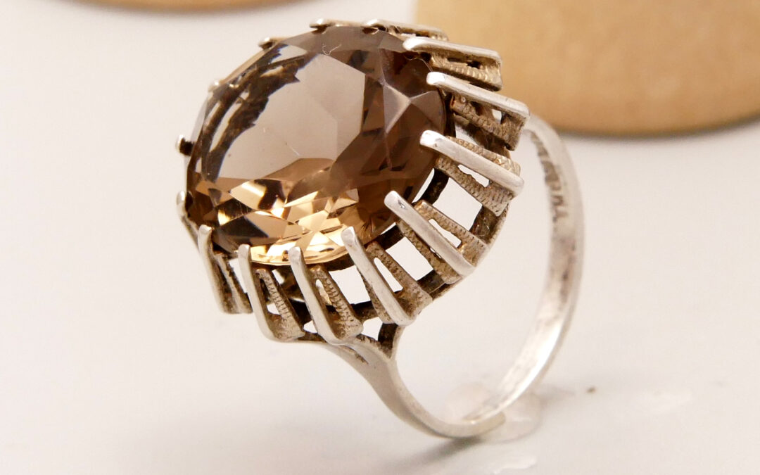 Modernist Silver Cocktail Ring with Large Smoky Quartz 11