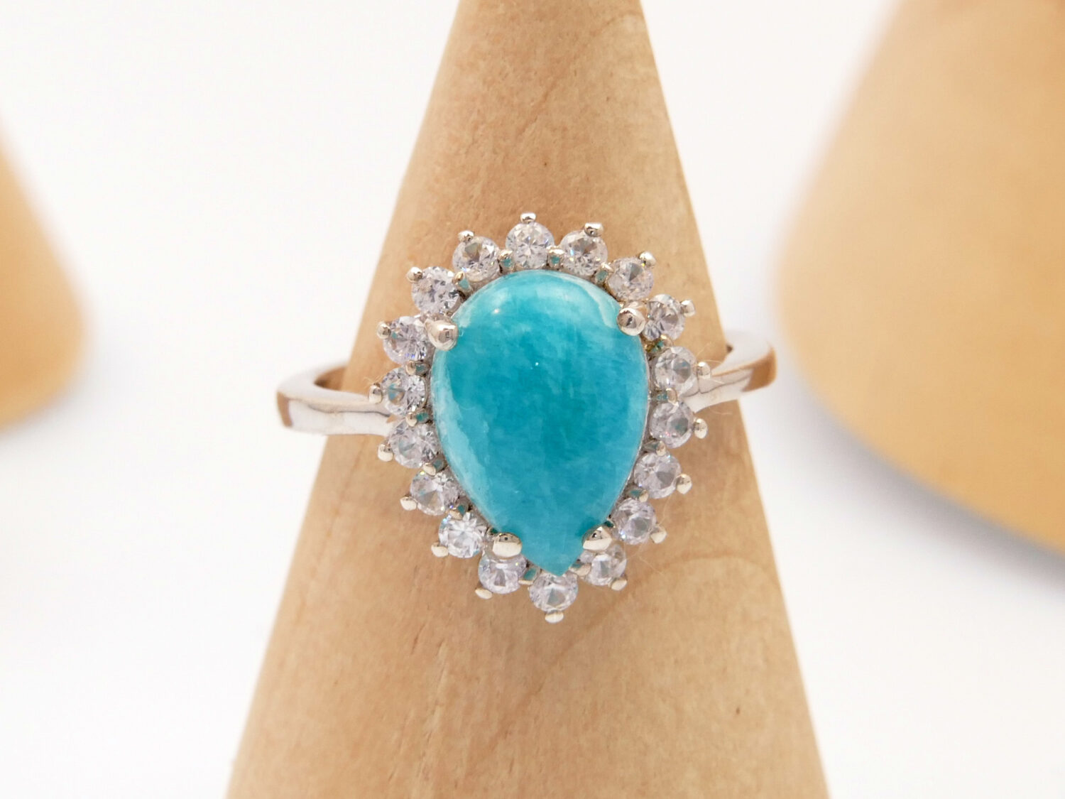 Tags: Blue Gem Stone, Cabochon Cut, Chrysoprase, Cyan Aqua Gem Stone, Halo Rings, Natural Zircon, Pear Cut Facet, Solid Silver, Sterling Silver