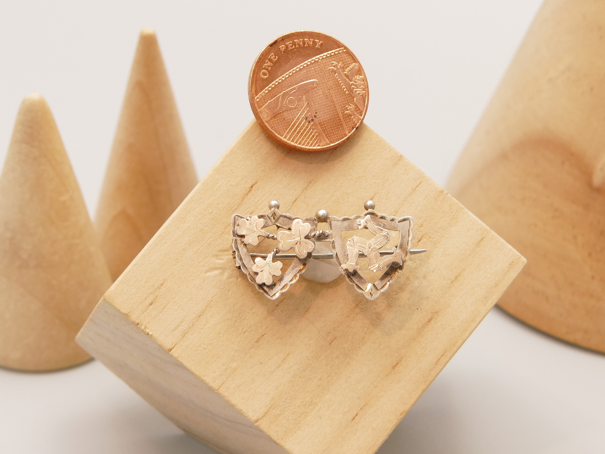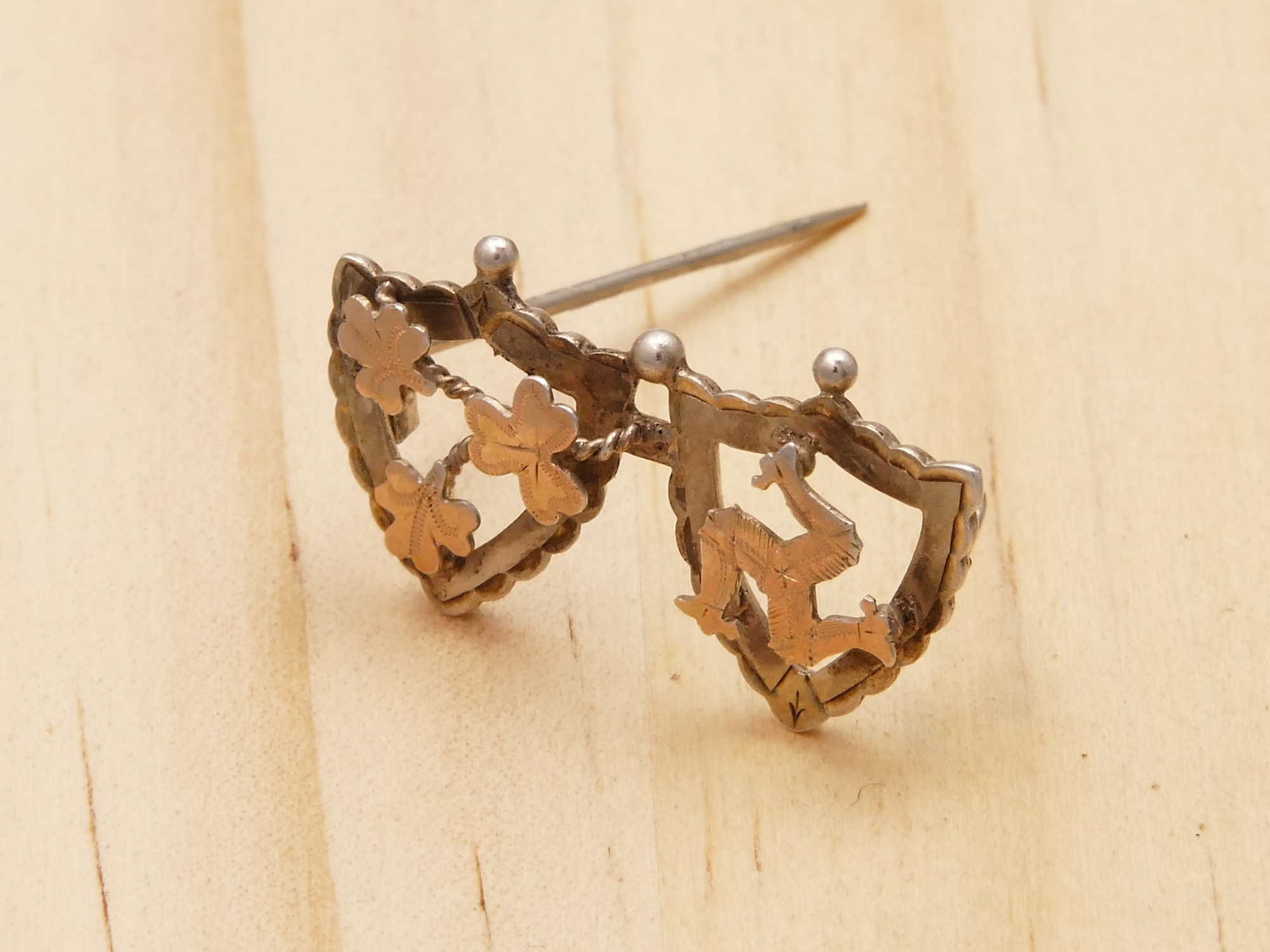 Antique Edwardian Brooch in Rose Gold Silver 1908 – Shamrock Isle of Man