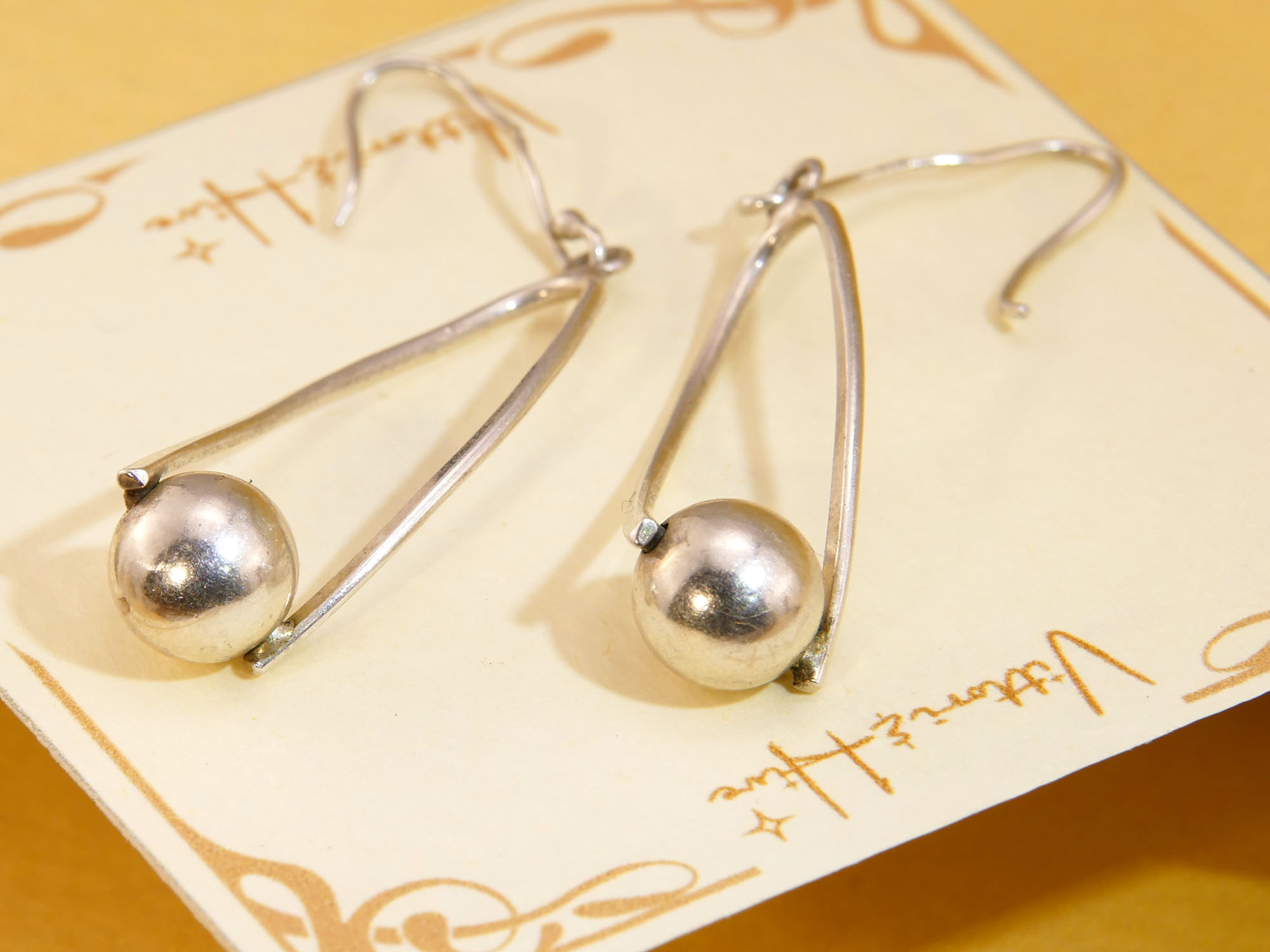 These vintage silver earrings are in good condition with light signs of use. Elegant and unusual—perfect for those who love understated statement jewellery.