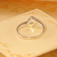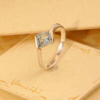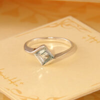 Stamped with “925” for sterling silver, the ring’s minimalist aesthetic reflects the clean, geometric lines characteristic of modernist jewellery from the era. The 9mm x 9mm Aquamarine dazzles with a delicate light blue hue, accented by subtle green undertones, making it a rare and captivating piece.