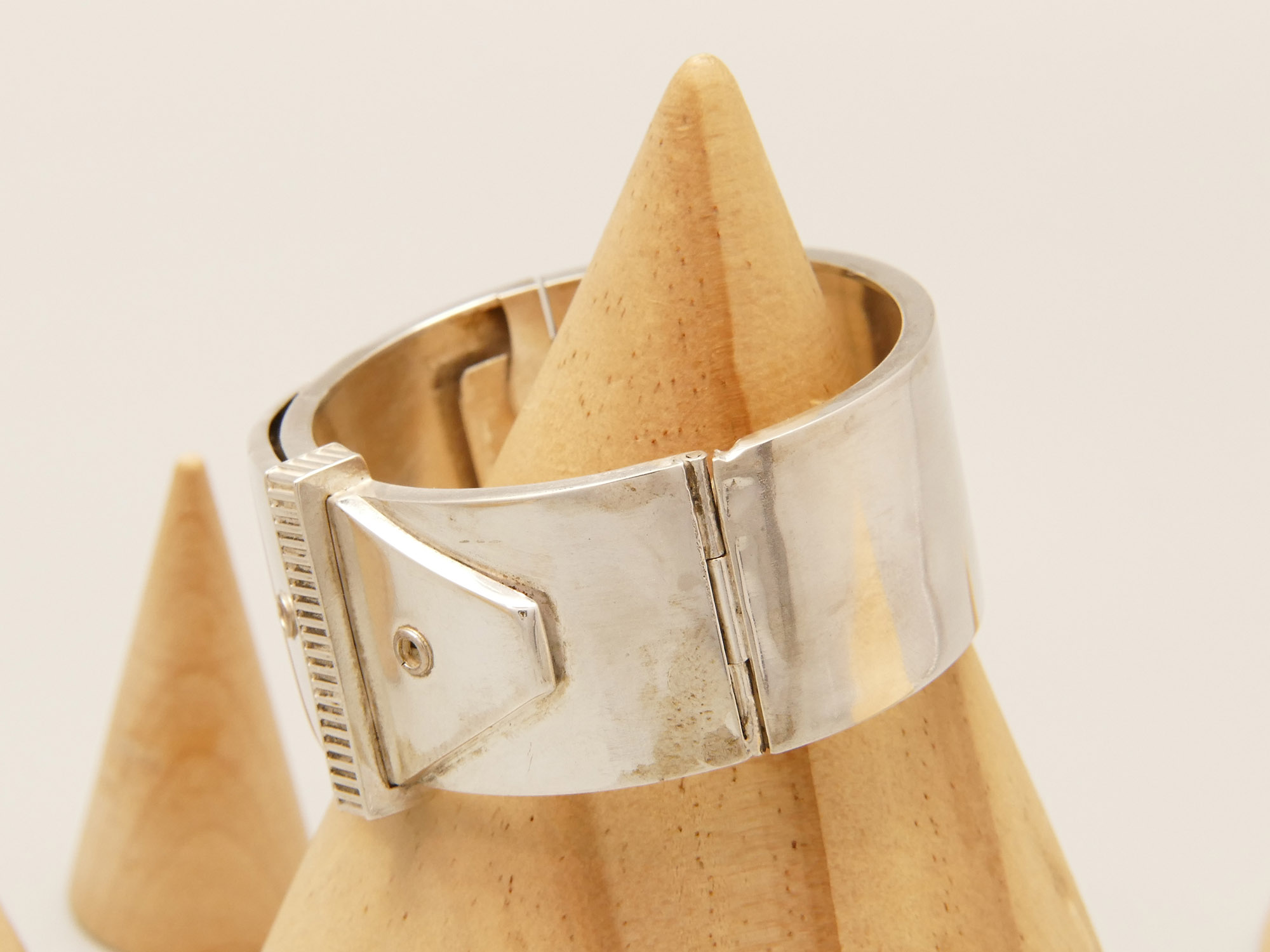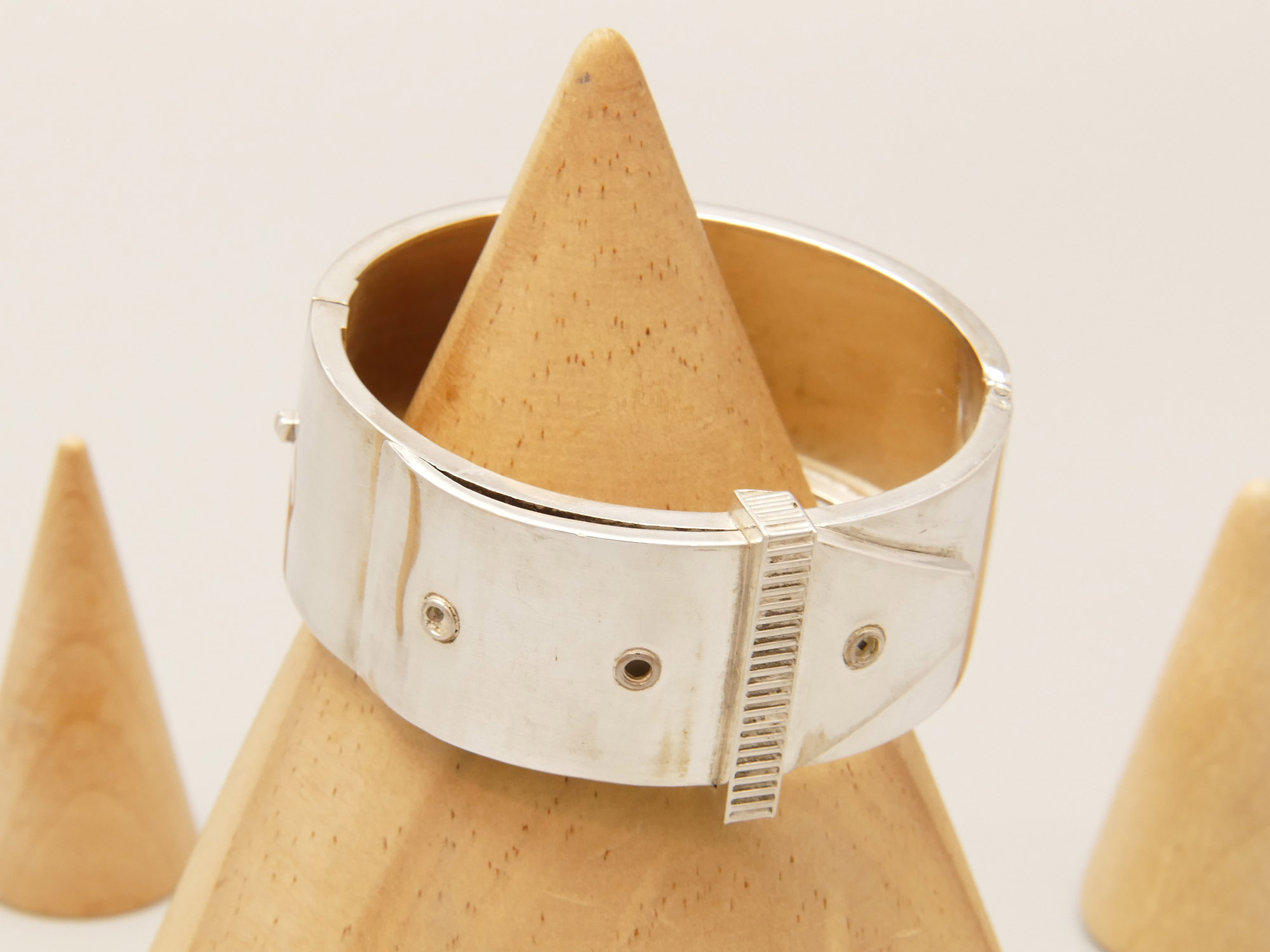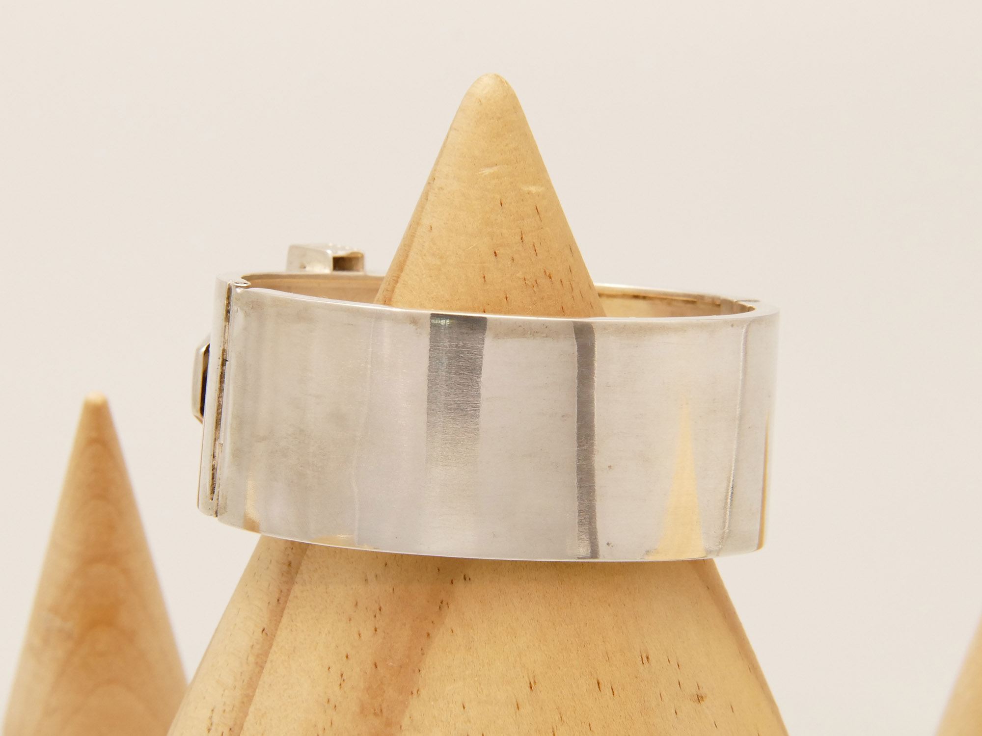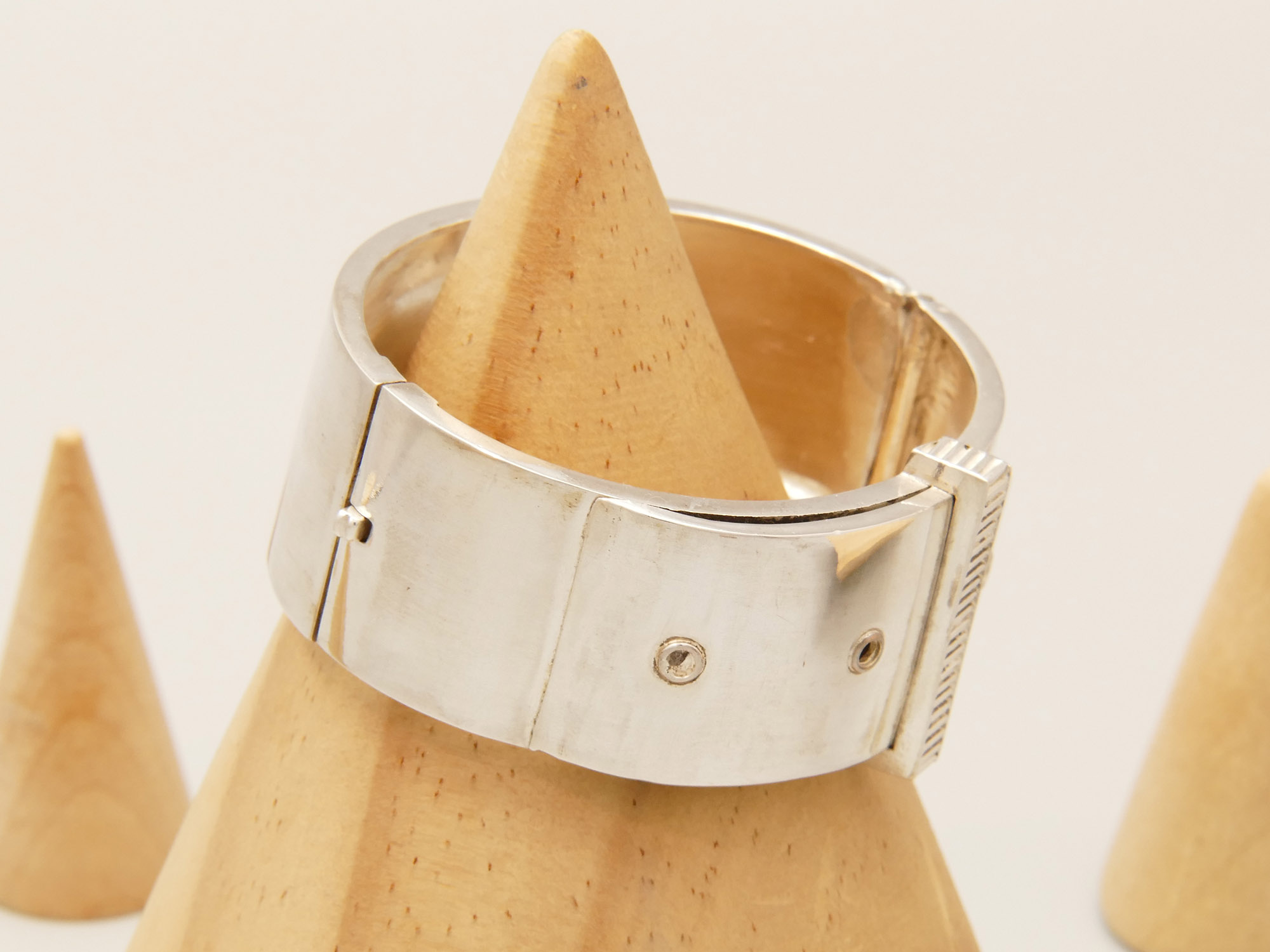Victorian Wide Belt Buckle Hinged Bangle Solid Sterling Silver Lawrence Emanuel 1880