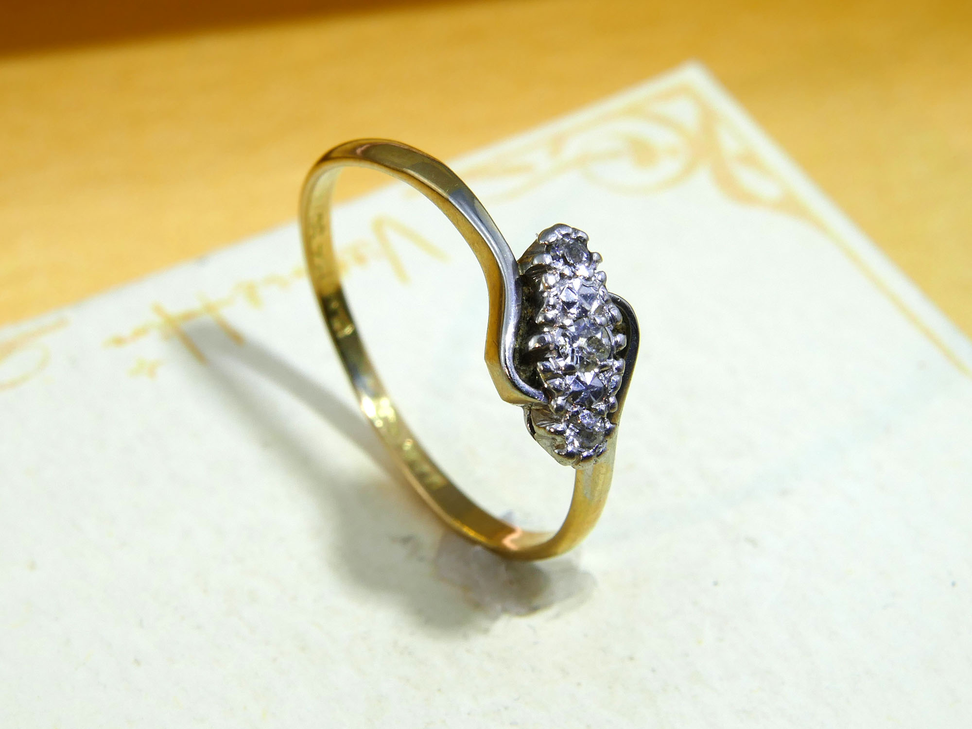 Vintage 18ct Gold Diamond Trilogy Ring, Mid Century Crossover Three Stone Diamond