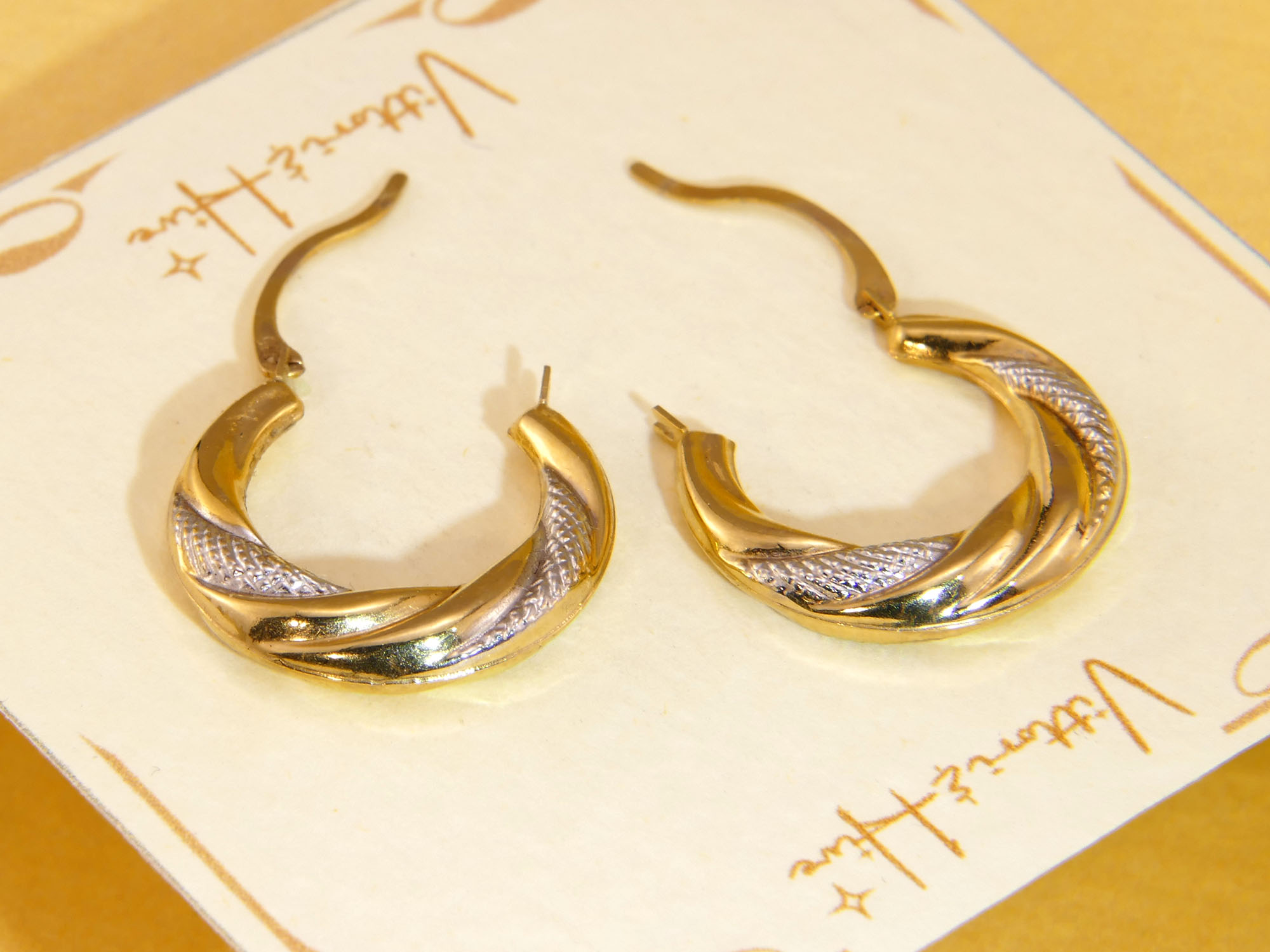 Vintage Bi Colour Gold Huggie Hoops Earrings