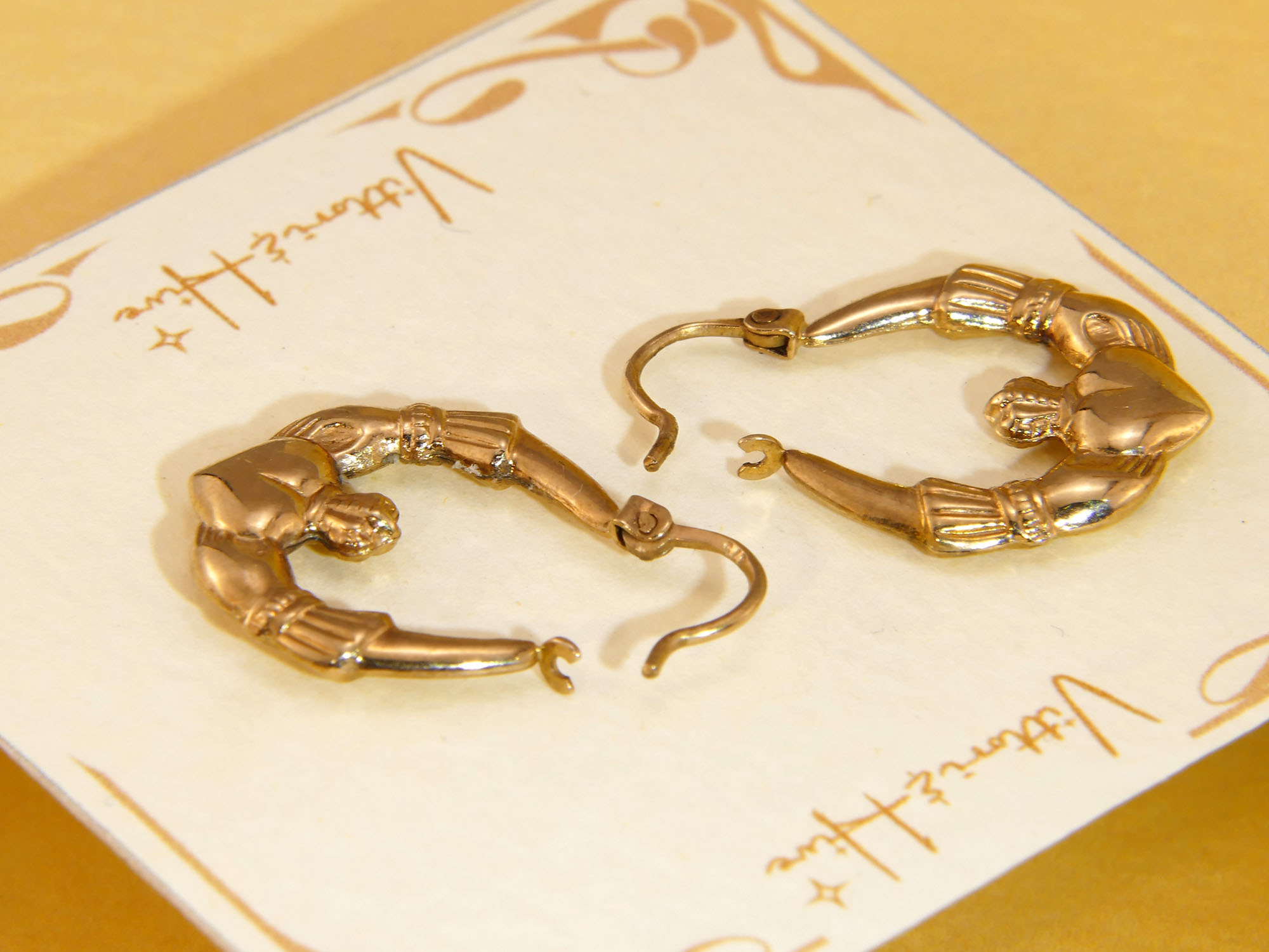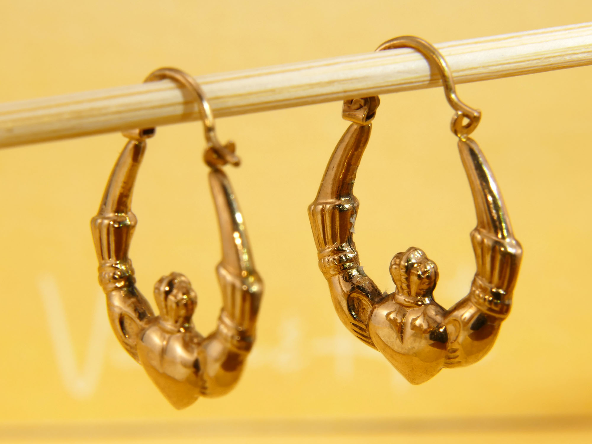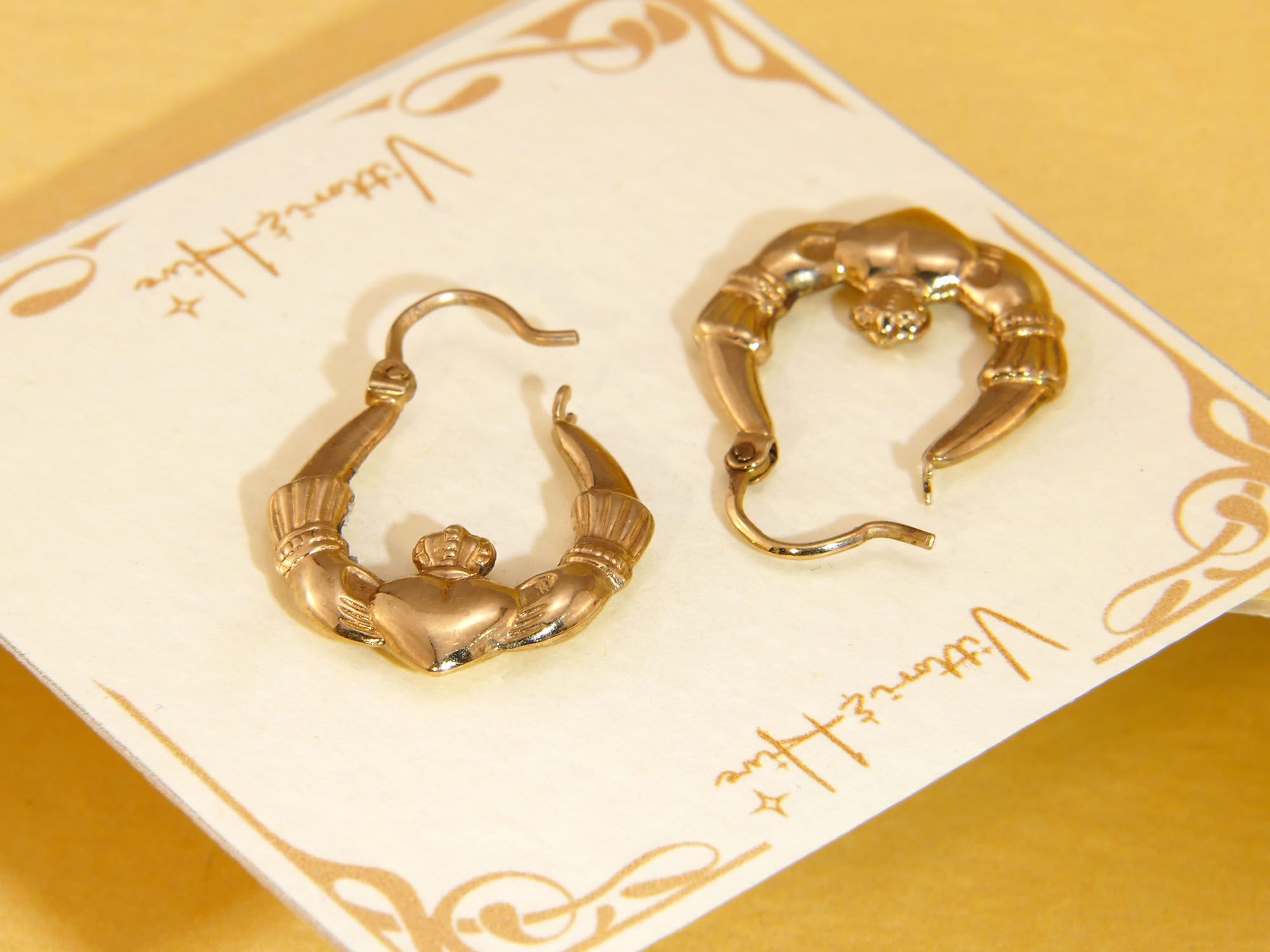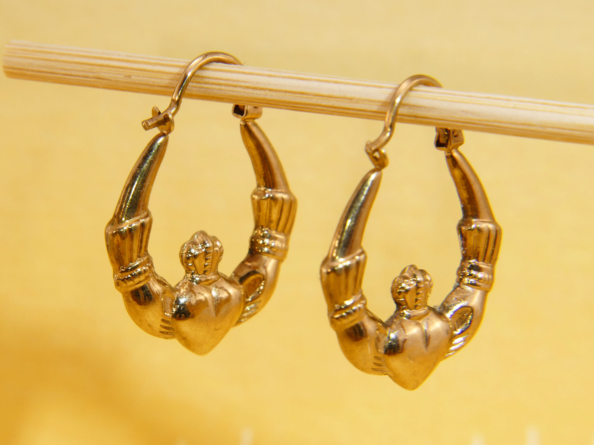 Vintage Claddagh Hoops 9ct Yellow Gold