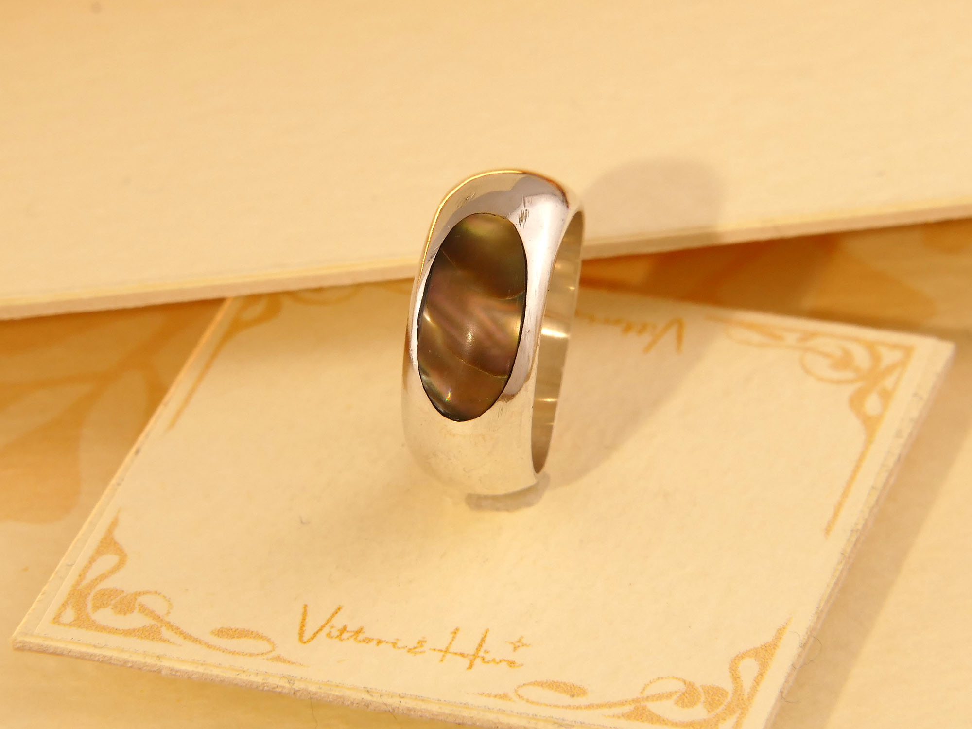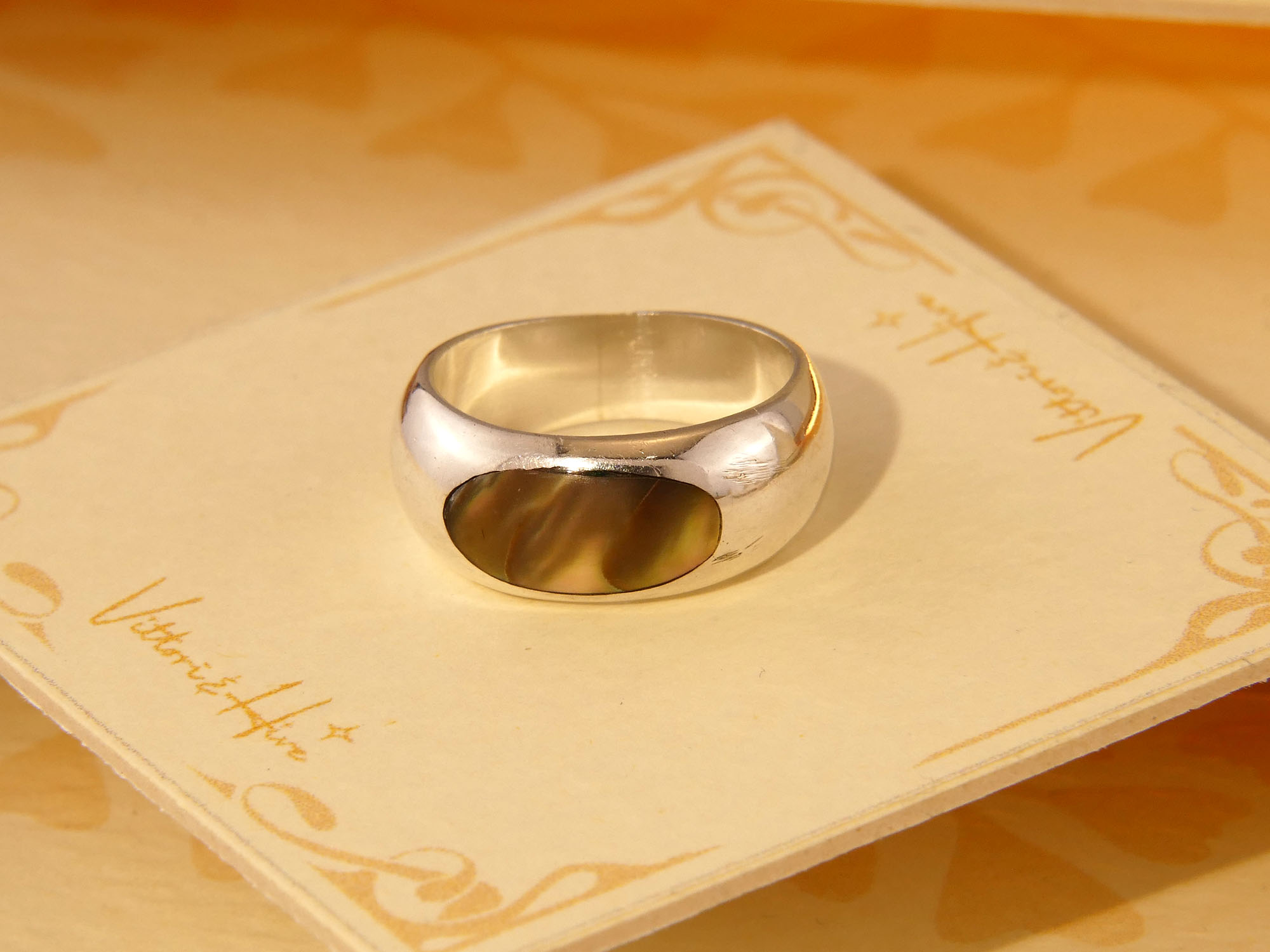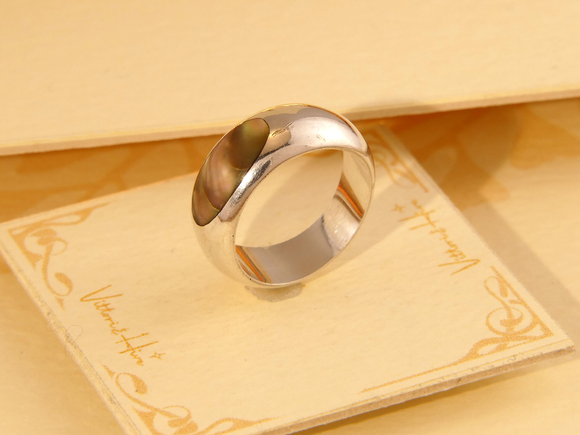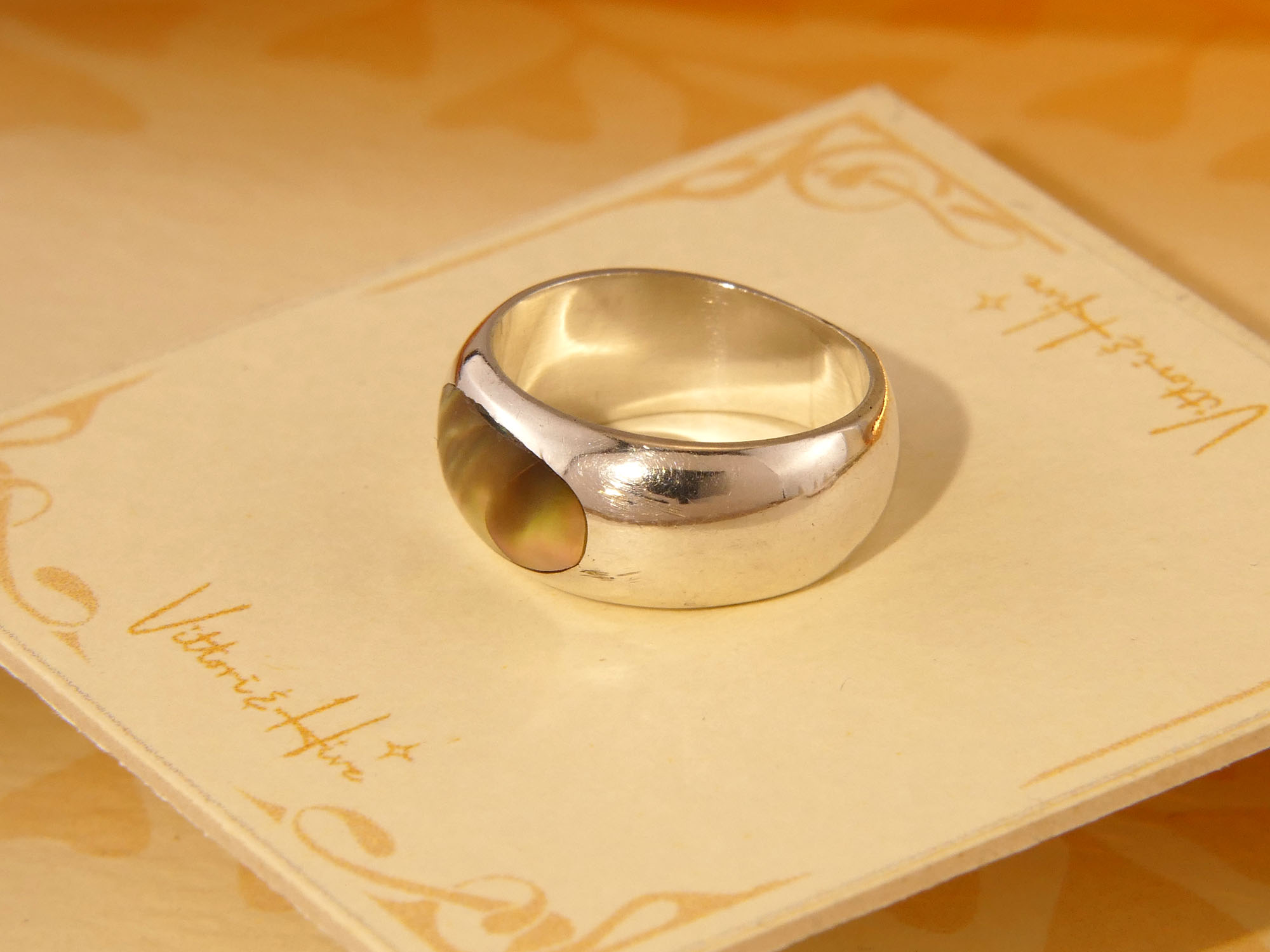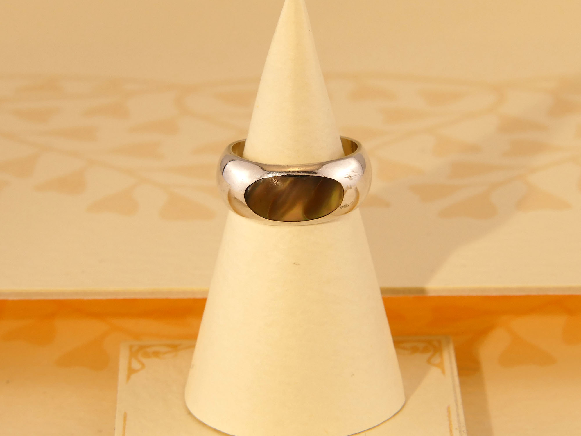 Vintage Domed Thick Silver Band Ring Mother of Pearl Panel