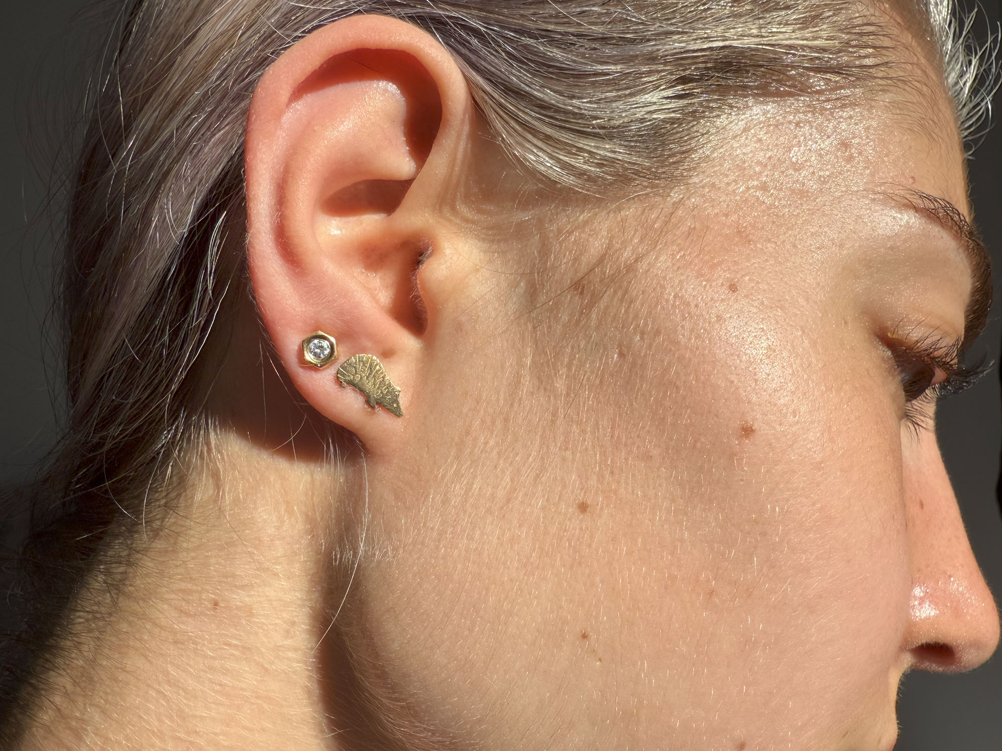 Vintage Hedgehog Stud Earrings in 9ct Yellow Gold