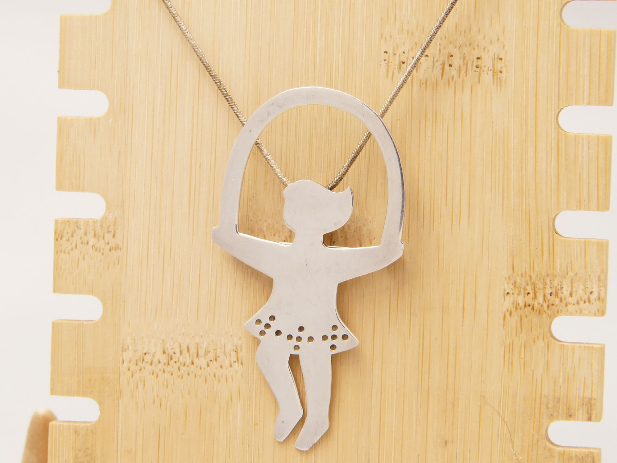 Modernist Texas Sterling Silver Cartoon Girl Jump Rope Necklace Pin