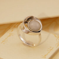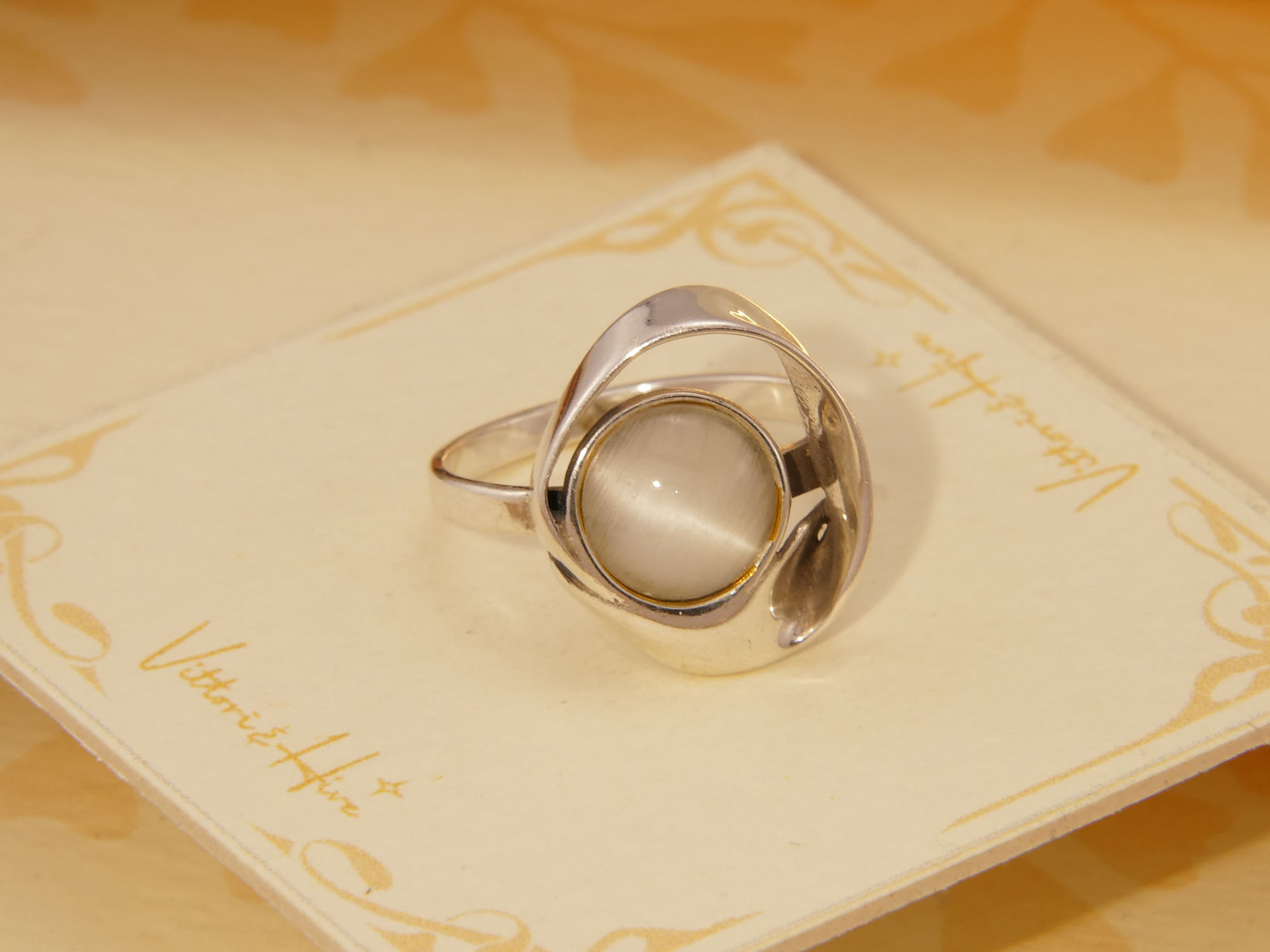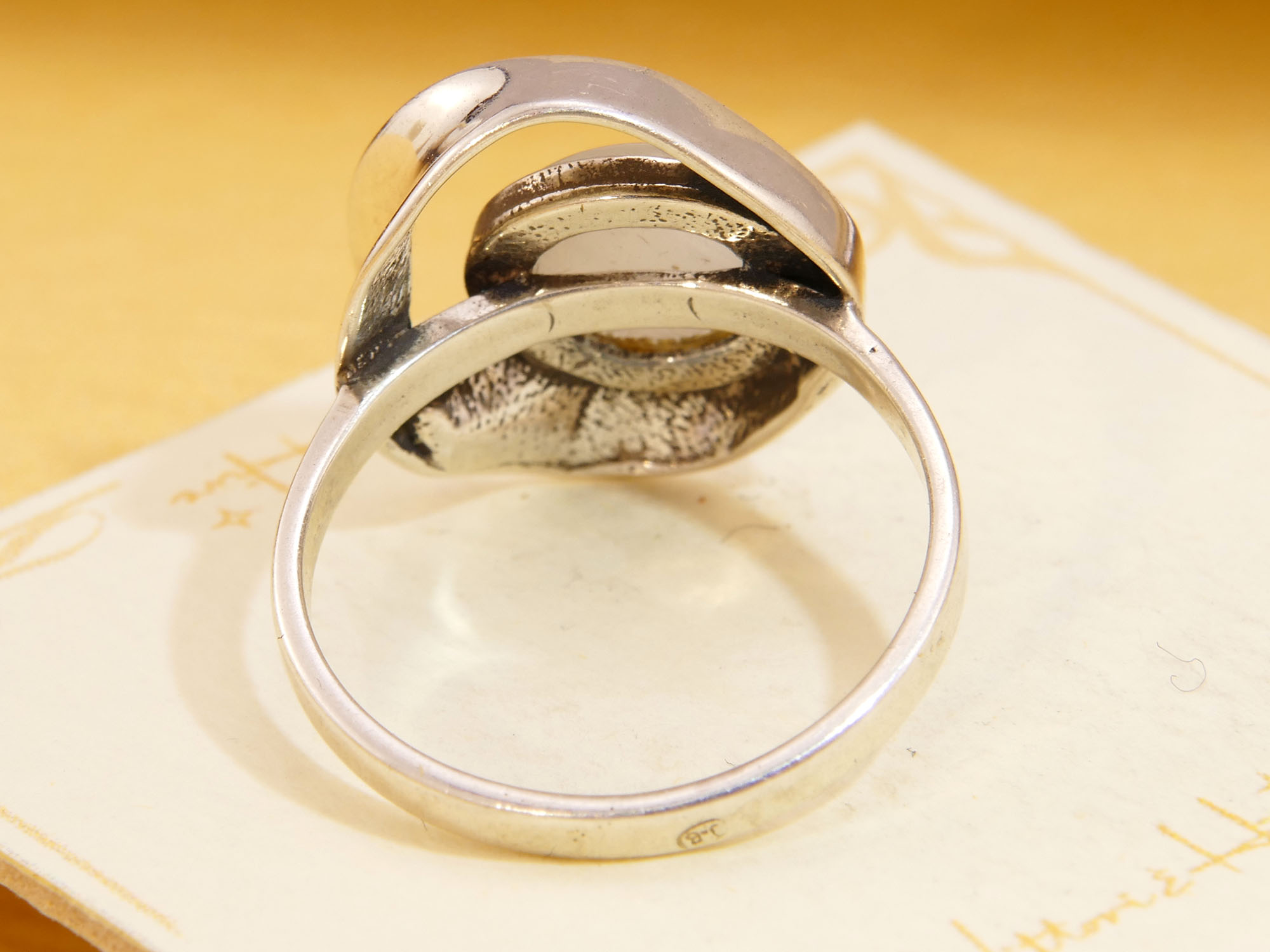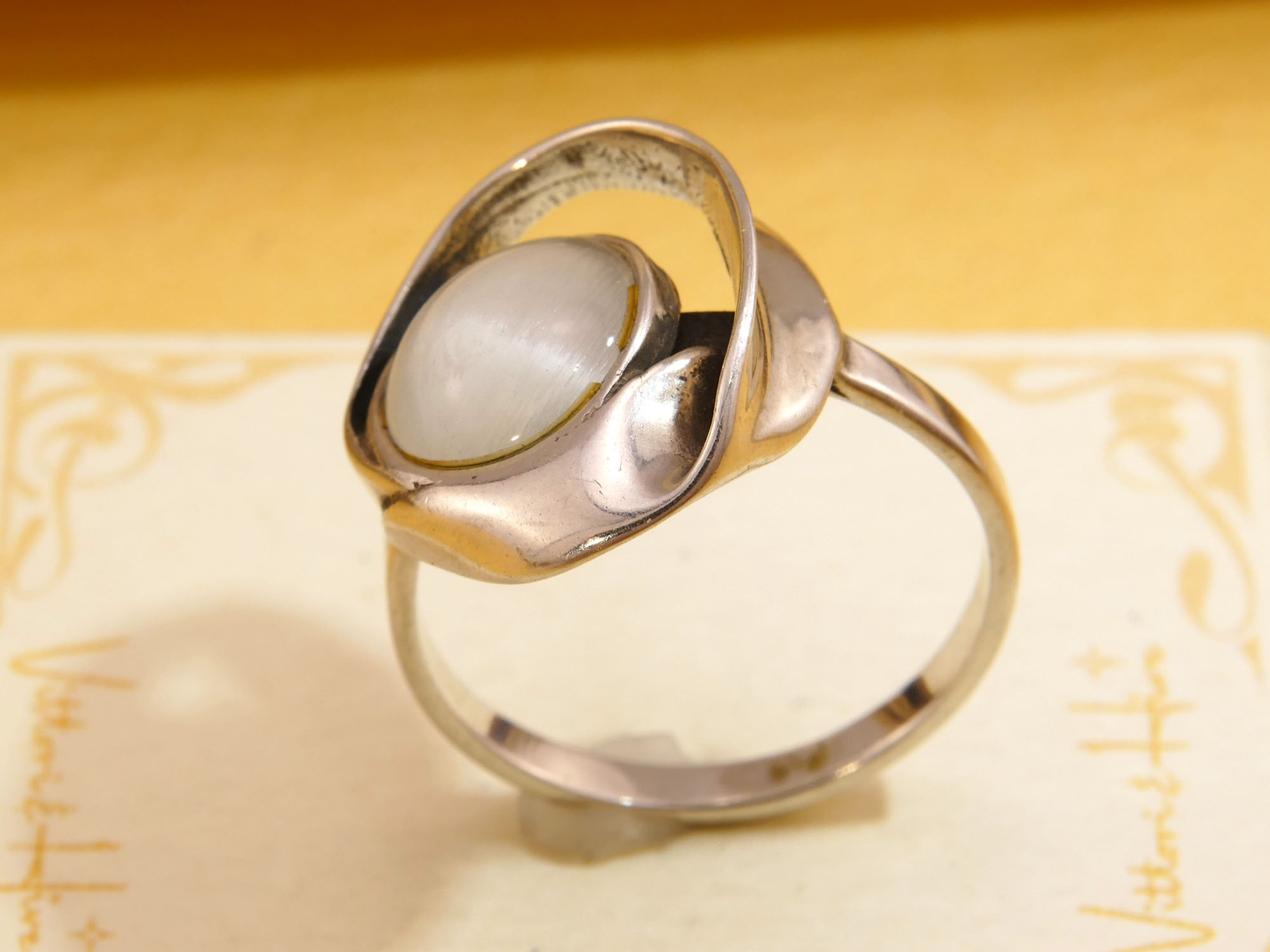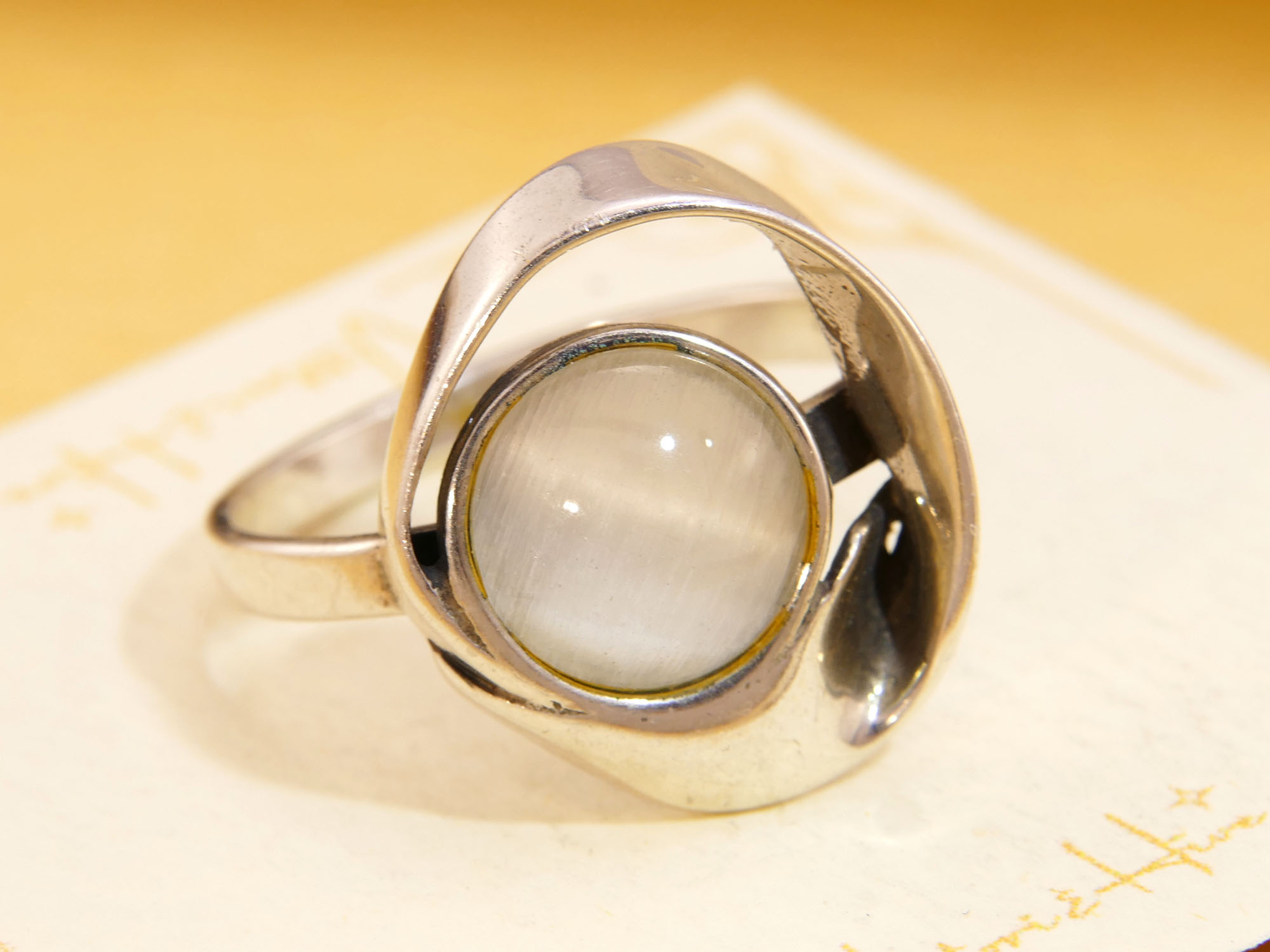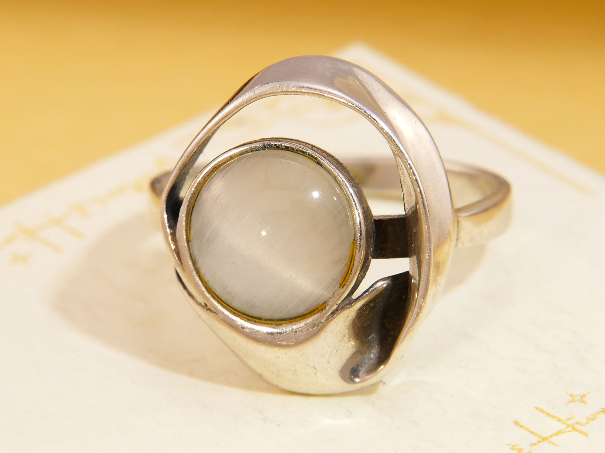 Vintage Modernist White Moonstone Solid Silver Ring Sweden