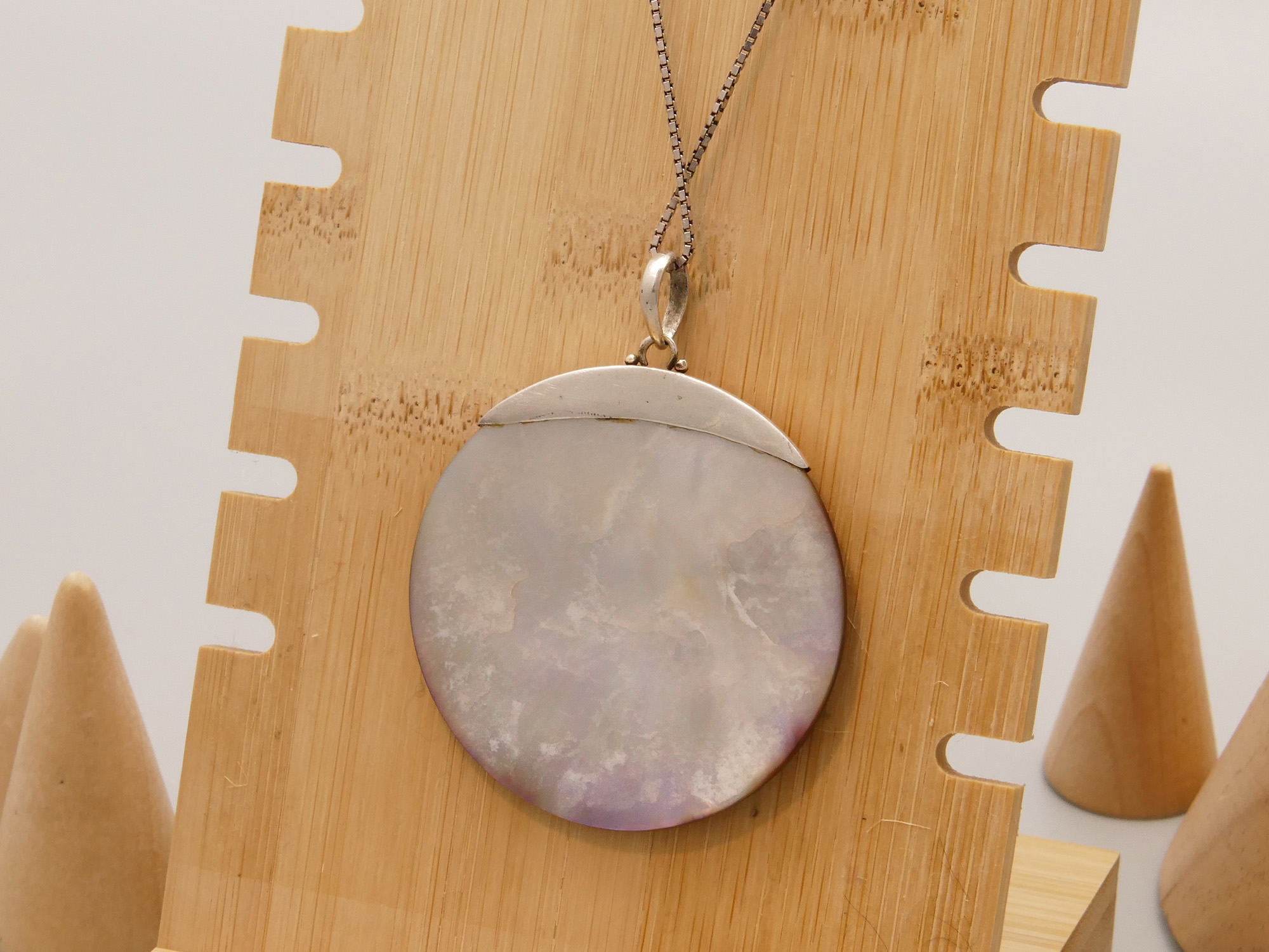 Eye catching & mouth watering pendant – Mother of Pearl berry with a solid silver mount.