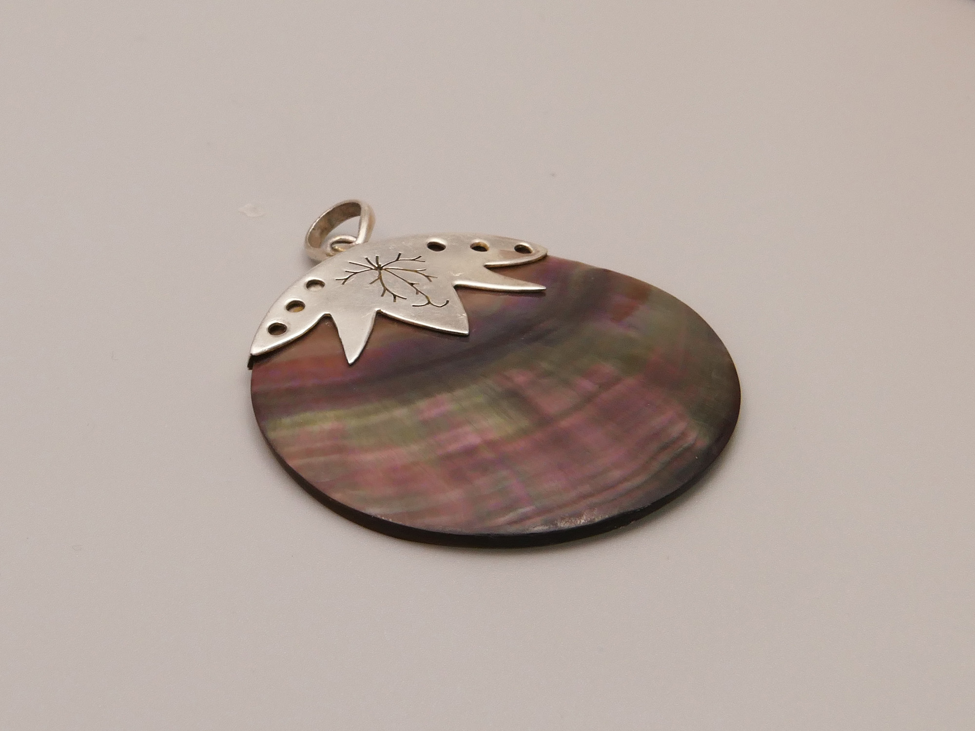Vintage Mother of Pearl Pendant with Sterling Silver Mount – Blackcurrant