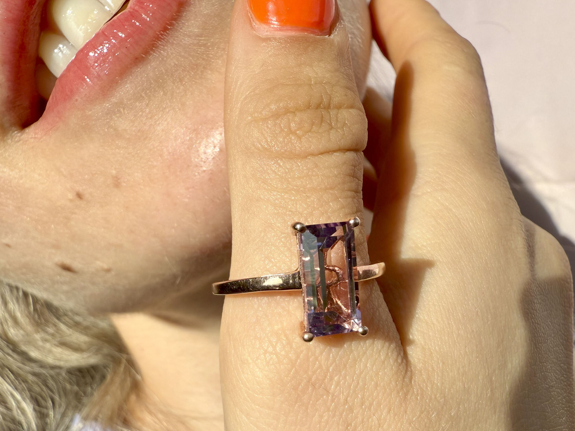 Unique Lilac Rose de France Amethyst Solitaire Ring in Rose Gold Plated Silver