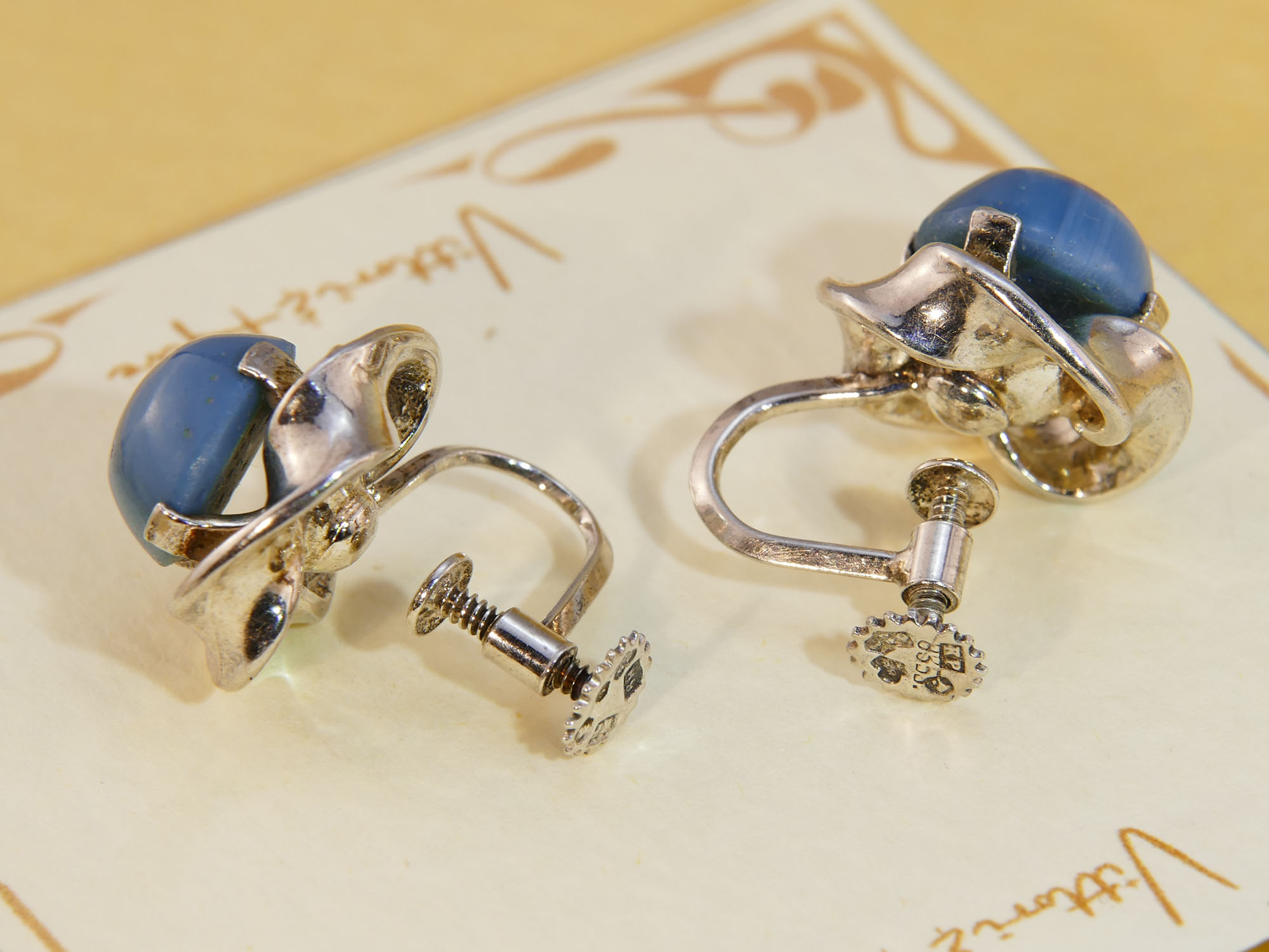 Vintage Swedish Blue Agate Earrings in 835 Silver Screw Back