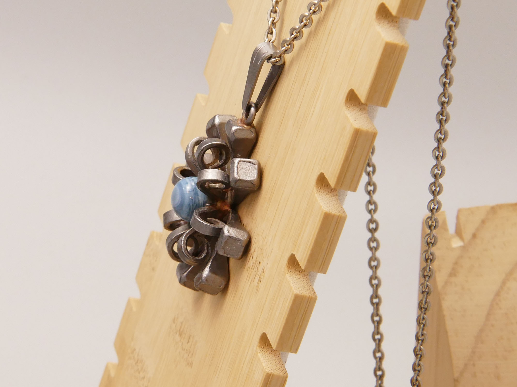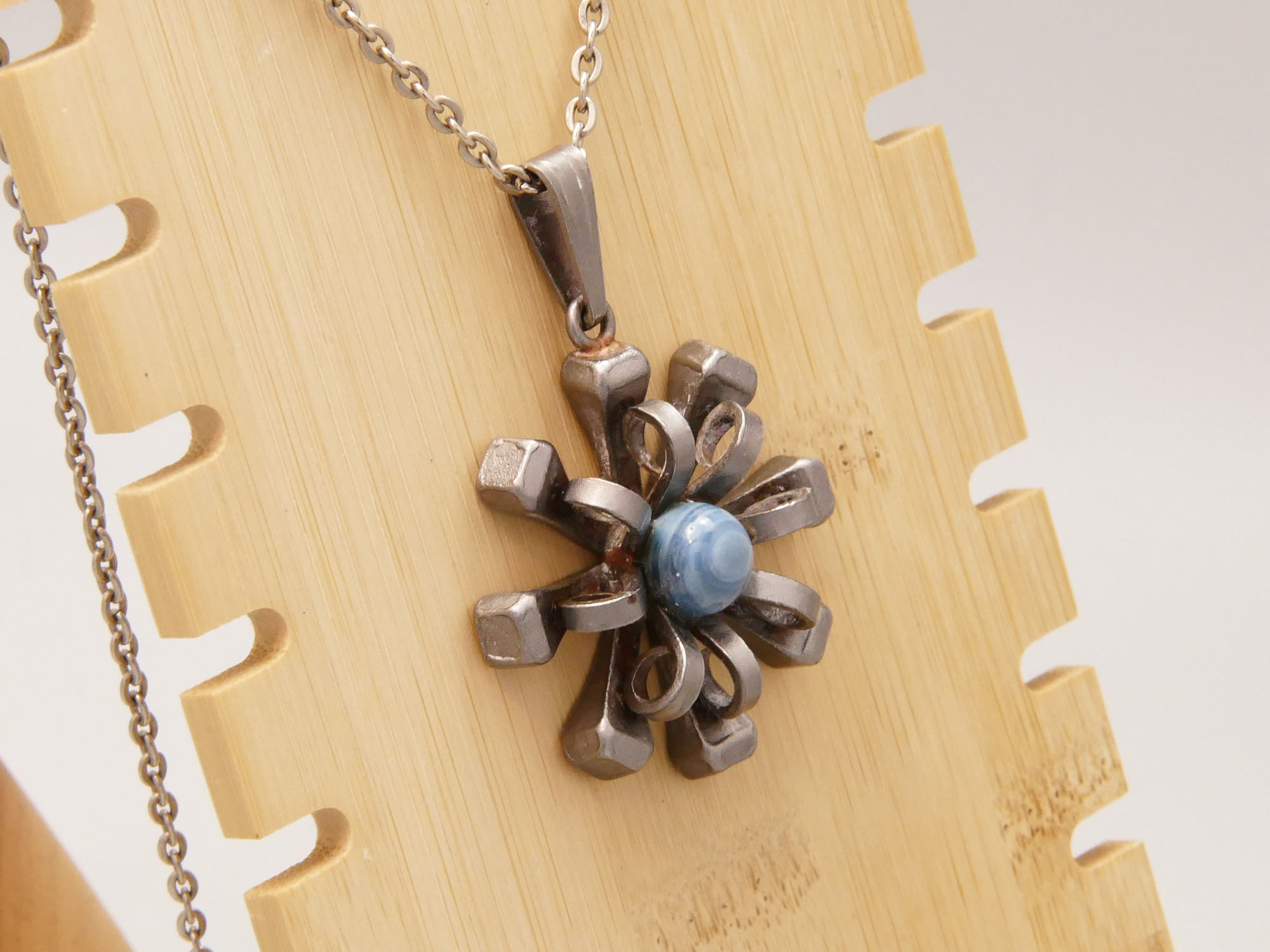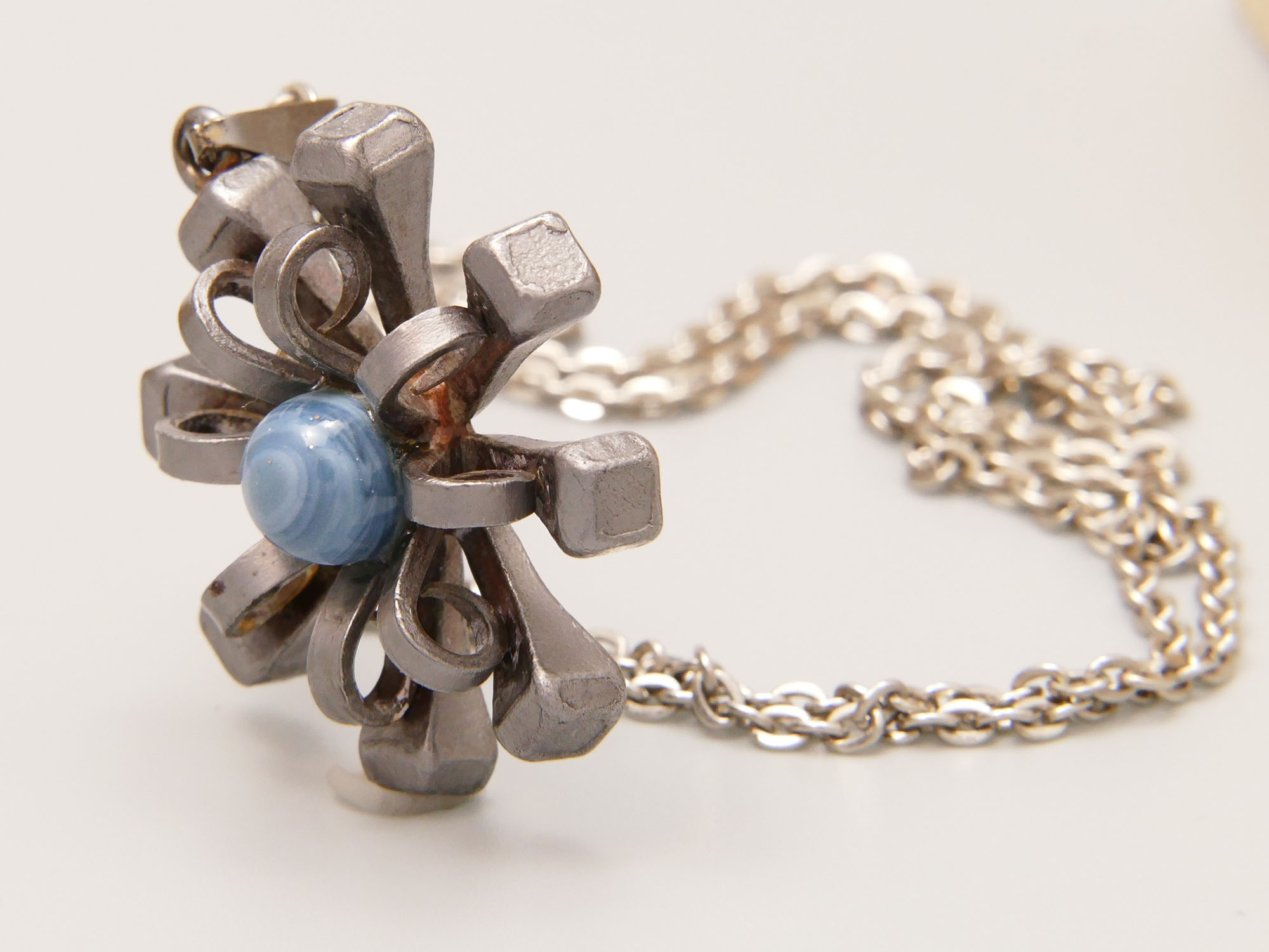 Retro Mid Century Heavy Metal Necklace from Sweden with Blue Gem Stone