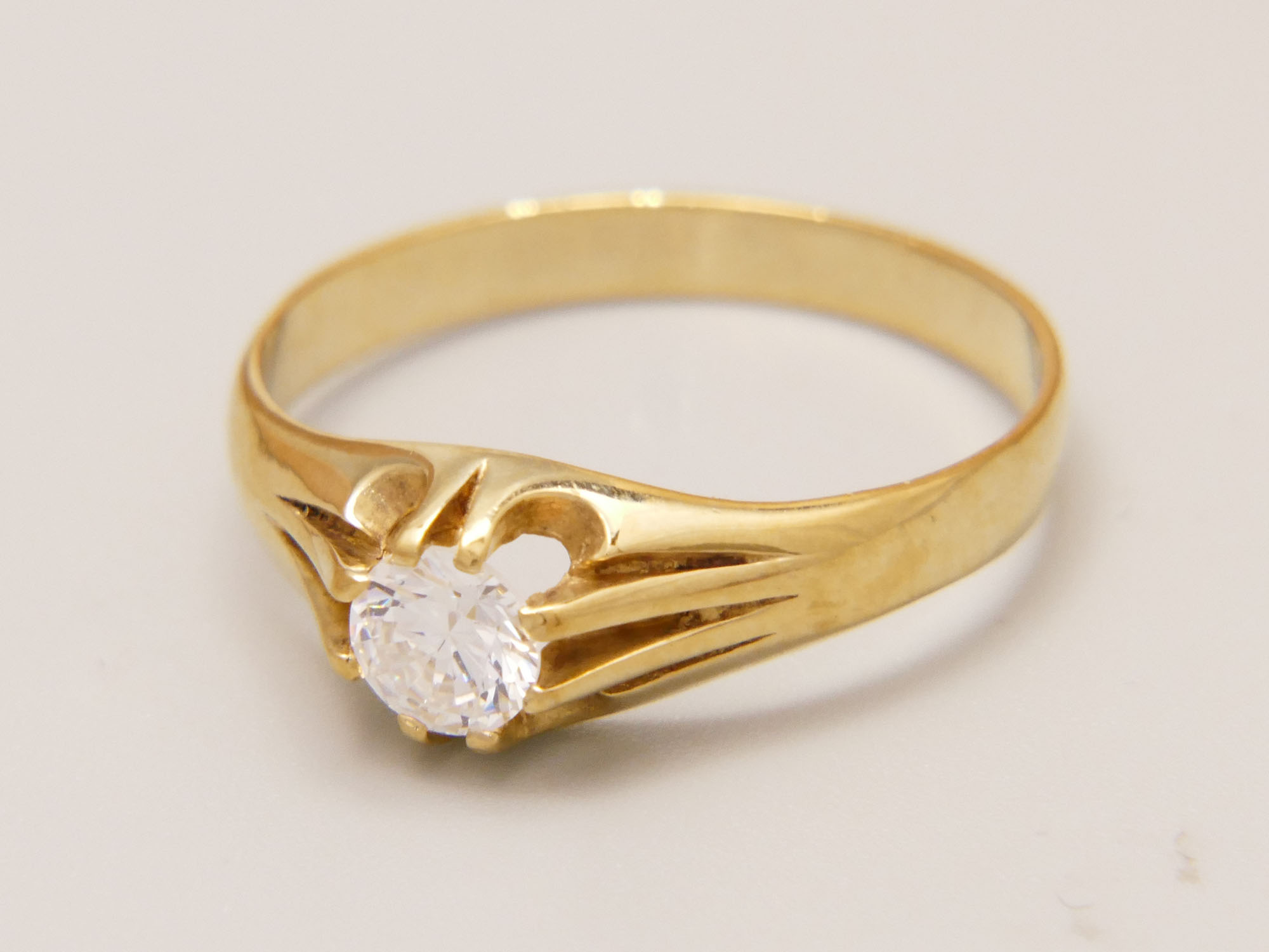 Faux Fake Diamond Single Stone Yellow Gold Ring